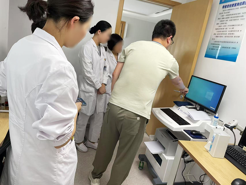 完成裝機(jī)后,售后工程師團(tuán)隊(duì)隨即開展了嚴(yán)謹(jǐn)深入的培訓(xùn)工作。培訓(xùn)內(nèi)容涵蓋設(shè)備結(jié)構(gòu)功能、檢測操作、報(bào)告解釋、軟件使用、保養(yǎng)等各個(gè)方面。在檢測操作培訓(xùn)環(huán)節(jié),工程師進(jìn)行現(xiàn)場演示,指導(dǎo)醫(yī)護(hù)人員正確擺放患者檢測部位,熟練操作設(shè)備獲取準(zhǔn)確數(shù)據(jù)。對(duì)于報(bào)告解釋,工程師詳細(xì)解讀了報(bào)告中各項(xiàng)參數(shù)的含義,如骨密度值、T 值和 Z 值等,讓醫(yī)護(hù)人員能夠依據(jù)報(bào)告為患者提供專業(yè)的診斷建議。